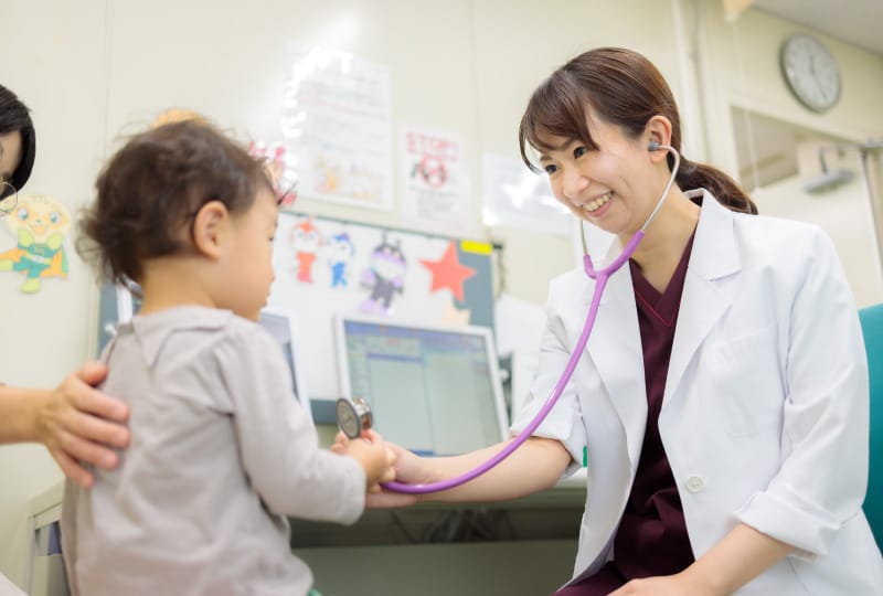 小児外科小児外来看護師は、内科系・外科系の各診察室や処置室、放射線検査、採血室などで、さまざまな成長発達段階にある子ども達に応じた看護を提供し、子どもとそのご家族に対して、家庭や社会生活において快適に過ごせるよう外来通院を支援しています。
